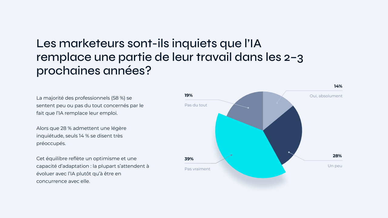 “Les marketeurs ne craignent pas le remplacement — ils s’attendent à une évolution. L’IA est perçue moins comme un rival que comme un collaborateur.”