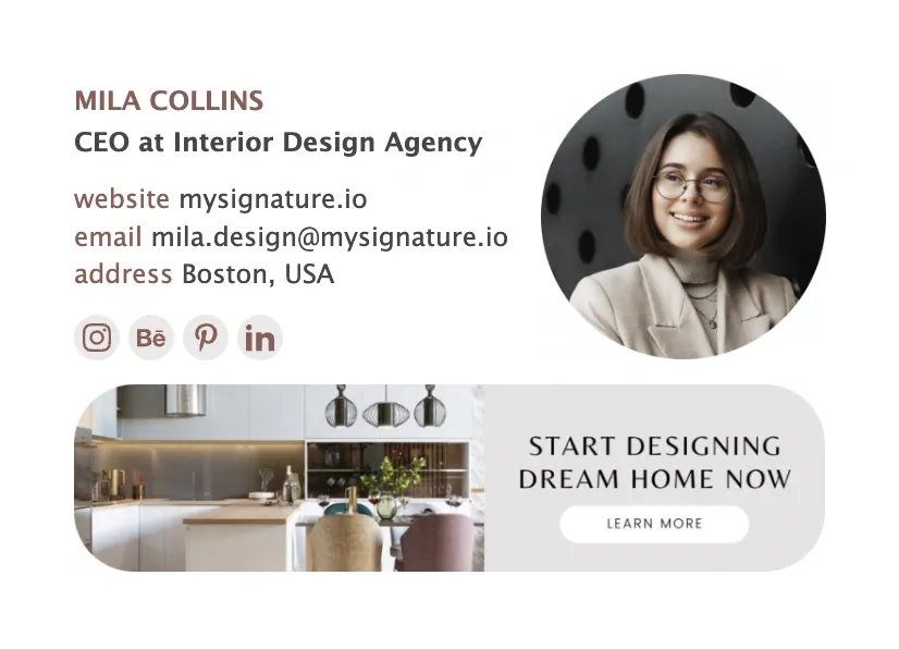 Les signatures d'email professionnelles pour PDG et dirigeants seniors incluent généralement un appel à l'action. Ils peuvent servir à promouvoir votre entreprise auprès de nouveaux prospects, à partager des actualités importantes, à mettre en avant des offres marketings, etc.