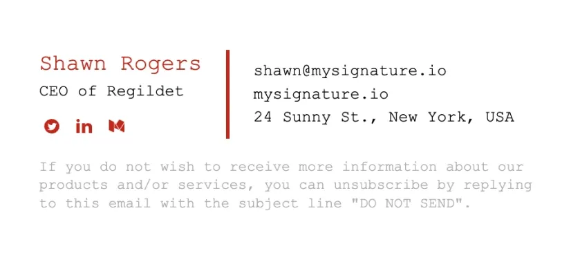 Pour obtenir un beau design de signature d'email pour PDG, limitez le nombre de liens. Il vaut mieux ajuster votre signature aux différentes utilisations à chaque fois que vous voulez accentuer quelque chose, plutôt que de la surcharger et de perdre les destinataires.