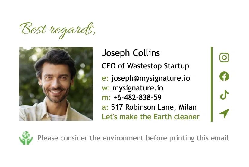 La signature d'email de PDG n'est pas qu'une ligne avec un nom et "meilleures salutations". C'est une opportunité de montrer votre professionnalisme et de marquer le coup. Dans le monde numérique actuel, les signatures d'email sont devenues un élément de l'identité à la fois interactif et attractif. Nous allons maintenant vous aider à comprendre comment exploiter au mieux votre signature professionnelle pour PDG.