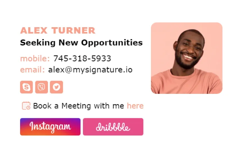 Ceci facilite la tâche du recruteur car ça lui permet de vérifier rapidement vos qualifications avant même de télécharger votre CV ou votre portfolio. Utilisez des profils spécifiques à l'industrie. Par exemple, si vous êtes photographe, vous devriez inclure votre Instagram. Le générateur de signature d'email MySignature vous permet de personnaliser votre signature avec des icônes de réseaux sociaux ayant la bonne taille, la bonne forme et la bonne couleur.