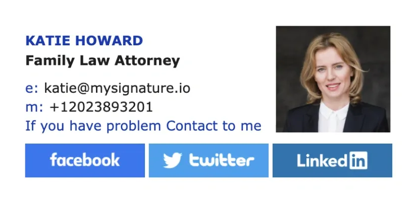 Create an email signatureThe recipient may be distracted if your attorney signature in email contains too much information (inspirational quotes, email address, too many contact details, too many social media icons, excessive links to some products or documents). In this article, we’ll provide you with the best attorney email signature sample so that you can understand what a good signature for an attorney email looks like.