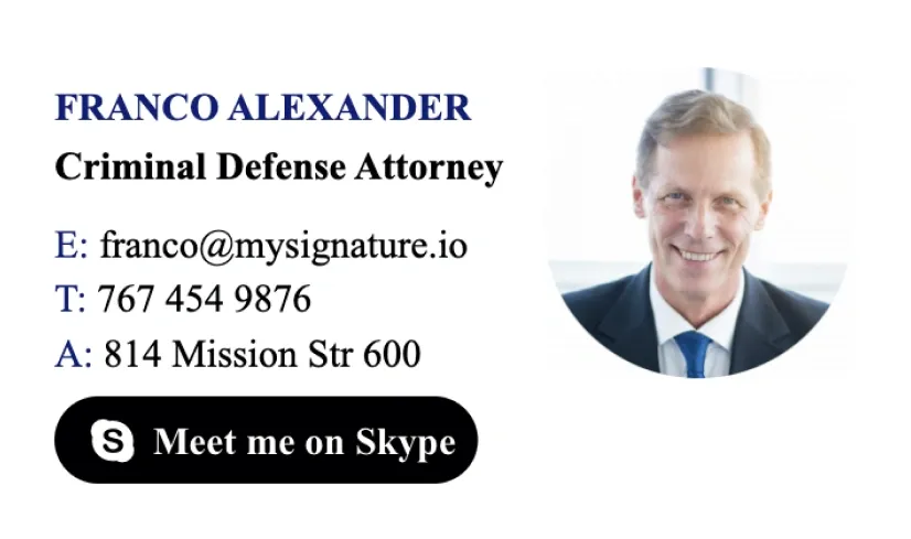 Create attorney email signatureEnhance your email communication with MySignature. Our powerful tool provides a seamless solution for creating impressive and professional email signatures tailored specifically for attorneys and legal professionals. With customizable templates and design options, you can showcase your expertise and stand out in every email you send.