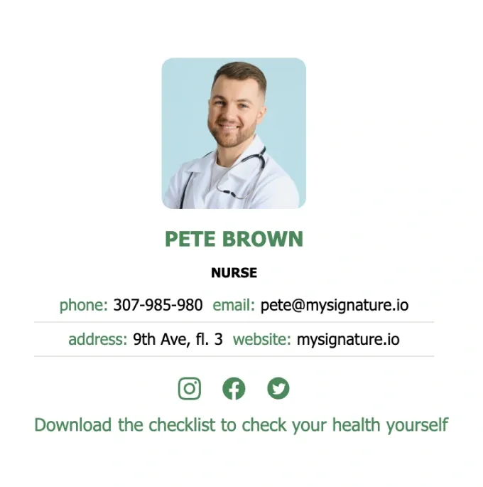 Streamline your communication and make a lasting impression with our professionally designed nurse email signature templates. All made with the help of MySignature.io.