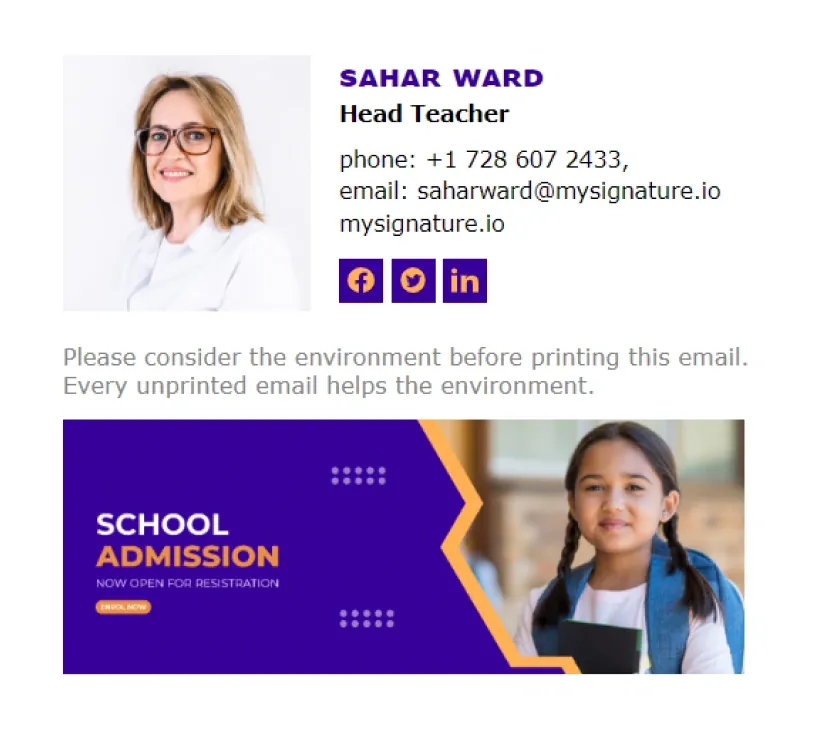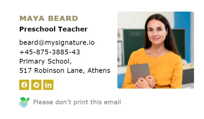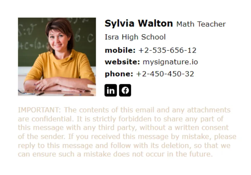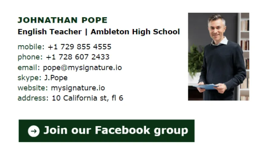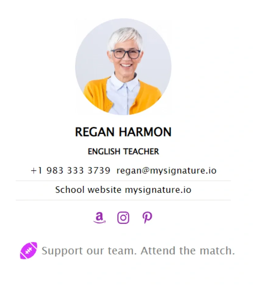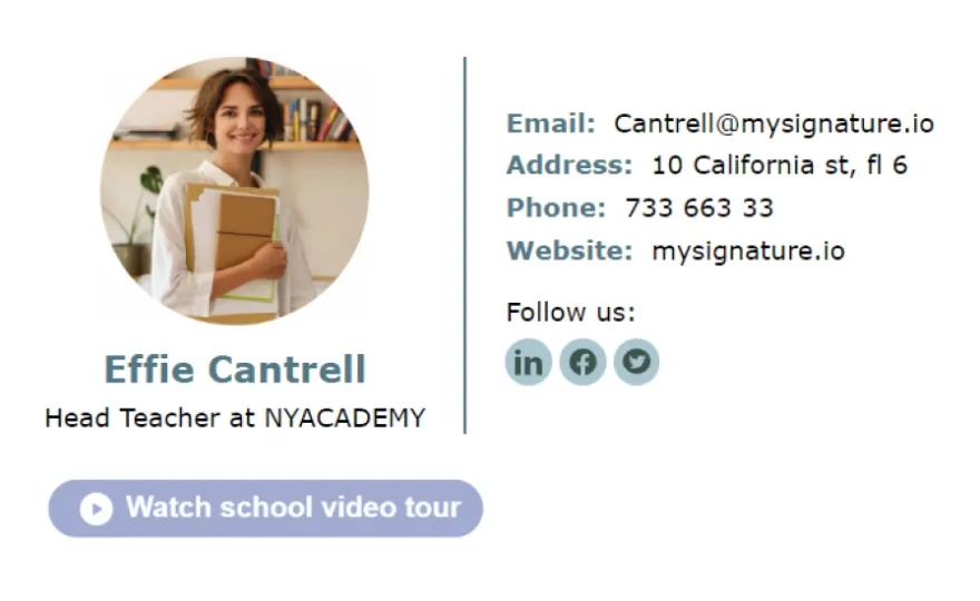 Si vous enseignez au niveau lycée, MySignature propose également une gamme d'options de signatures d'email pour enseignant. Consultez notre liste complète des meilleures signatures d'email pour enseignant de lycée.