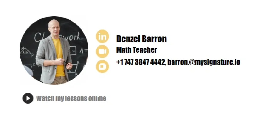 Le meilleur moyen de trouver la bonne option est de chercher des exemples de signatures d'email d'enseignant. Sur MySignature, vous trouverez une sélection de modèles de signatures d'email professionnelles pour chaque situation.